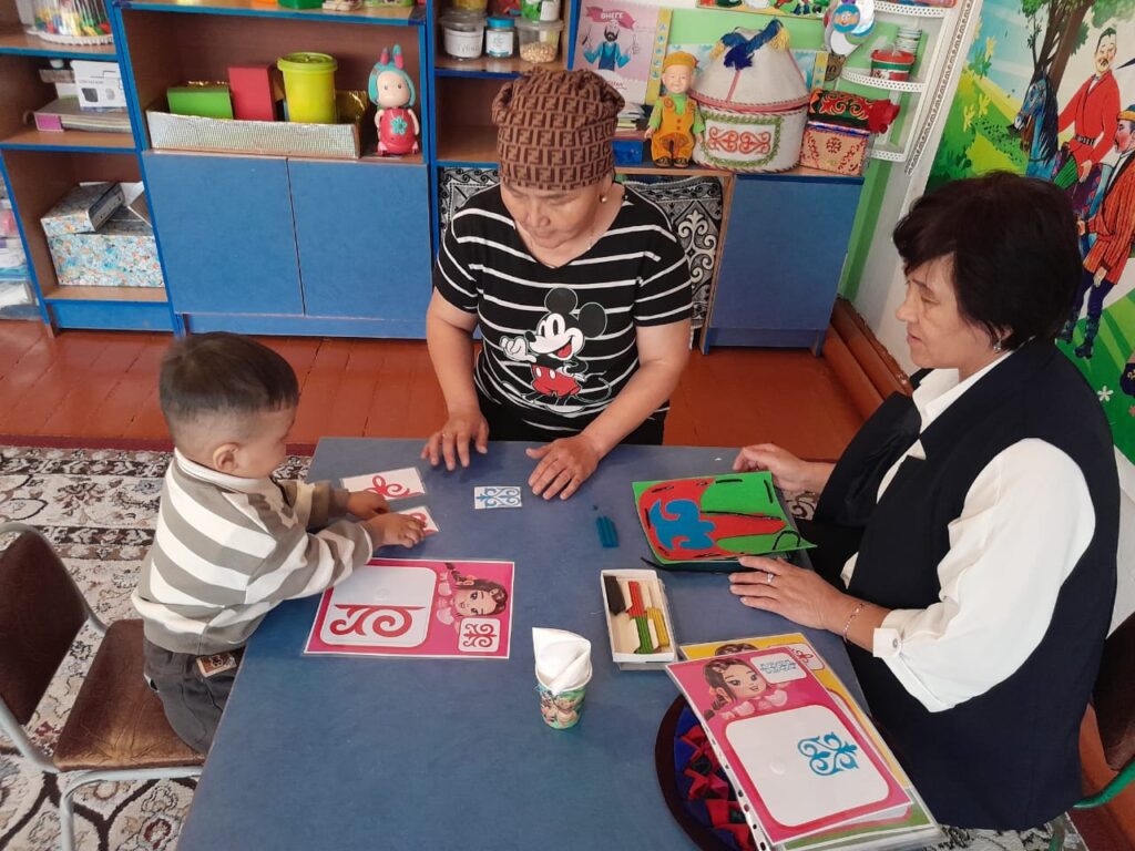 «Арай»балалар бақшасы консультациялық пункт маманы тәрбиеші Султанова Г.К. баланың қол маторикасын дамытып,түстерді ажырата білуге,үлкен-кіші заттарды топтастыру ретін көрсетті.